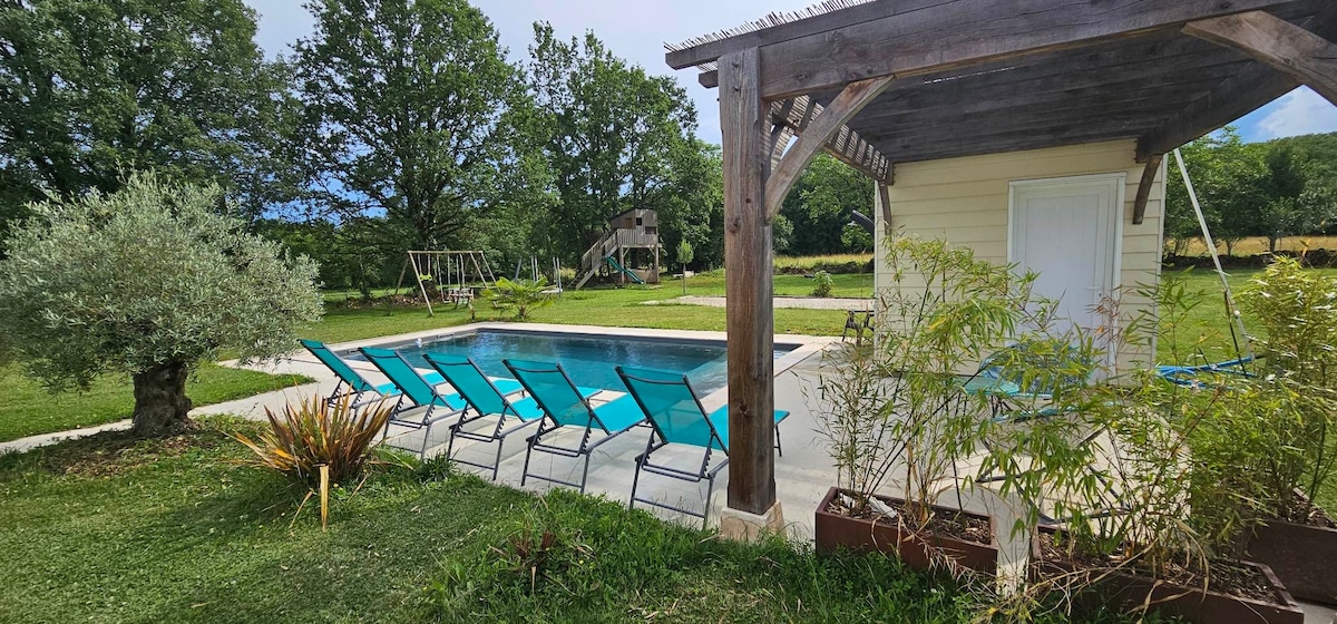 🌳 Զգացեք այս վերանորոգված Quercy ագարակային տան իսկական հմայքը ։ Քոթեջն իր դռներն է բացում ընտանիքի կամ ընկերների հետ բացառիկ հանգստի համար ։ - Այն իդեալական է 10 հոգու համար (մահճակալներ ավելացնելու հնարավորություն) - Առանձին և պաշտպանված լողավազան - Կատարյալ տեղադրություն Ավեյրոնի և Լոտի միջև - Մեծ այգի, տեռաս, պինգ պոնգի սեղան, պլանշա և մանղալ - Ճոպանուղի - Անկողնային սպիտակեղենը ներառված է Ձեր տունը սպասում է ձեզ ։ 😊