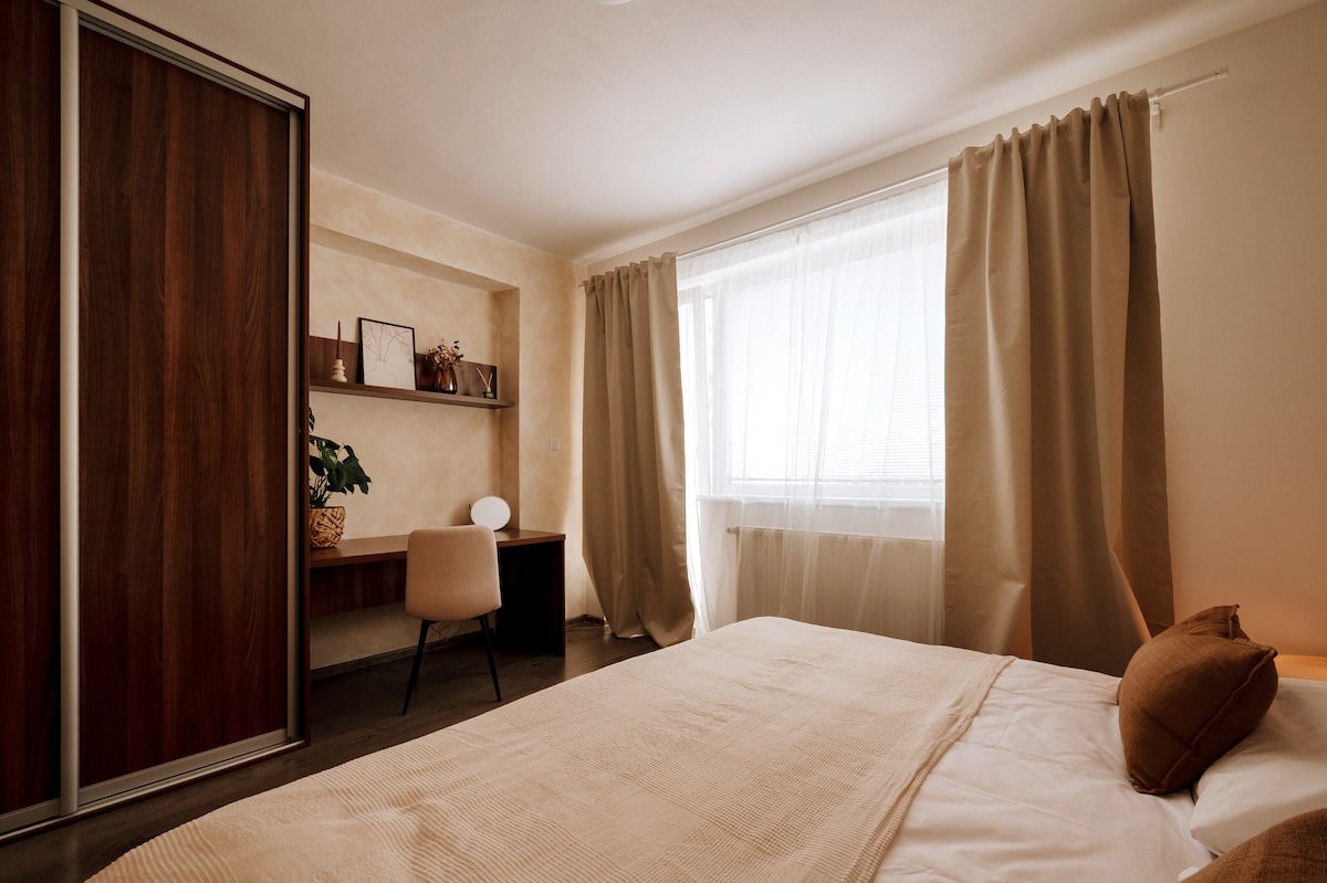 Հանգստացեք և հանգստացեք խաղաղության այս օազիսում ։ Մենք ձեզ առաջարկում ենք լիովին կահավորված բնակարան հանգիստ վայրում, որտեղ կարող եք լիովին հանգստանալ անհանգստություններից: Առանձին ջեռուցումով և կայանատեղով, որը գտնվում է քաղաքի կենտրոնին մոտ, մեր բնակարանը կատարյալ վայր է ձեր այցի համար ։ Վայելեք առանձին լոգասենյակի առանձնությունը և հանգստացեք ընդարձակ արևոտ պատշգամբում ։ Բնակարանը հարմար է ընտանիքների համար և հիանալի մեկնարկային կետ է շրջակայքում ուղևորությունների համար: