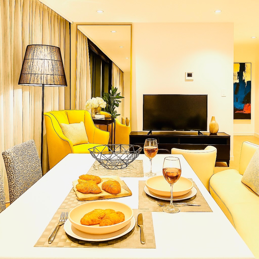 One Bedroom Premium Apartments include: - One spacious bedroom with King/Queen sized bed - Bathroom with shower & hairdryer - Fully equipped kitchen facilities - Open plan living and dining with 50” Crystal LED UHD 4K Smart TV - Private Laundry equipped with iron & ironing board - Private balcony with outdoor furniture - Individually controlled ducted heating and air conditioning - Bluetooth clock/radio - Direct dial telephone - Complimentary high speed Wifi Internet