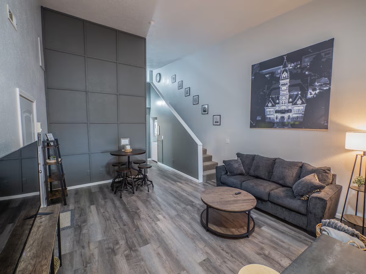 Դուք չեք գտնի նման բան այս գեղեցիկ լոֆթը 100 մղոն հեռավորության վրա: Գտնվում է Մերիվիլ քաղաքի պատմական կենտրոնի կառուցապատման հենց սրտում ՝ NWMSU - ից ընդամենը մեկ մղոն հեռավորության վրա ։ Այն ունի 1600 քառակուսի մետր տարածք ՝ երեք ննջասենյակով, երկու ամբողջական սպա - լոգասենյակով, երկու ցնցող բացօթյա հյուրասենյակներով, բաց հյուրասենյակով/խոհանոցով և բոլոր հարմարություններով ։ Քայլեք դեպի ընթրիք, գնումներ կատարեք, նետեք որոշ կացիններ, հարվածեք գարեջրատանը. ամեն ինչ հենց ձեր շեմին է: