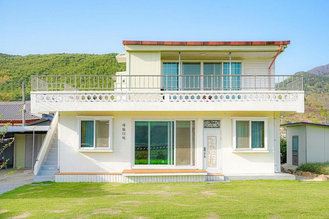 펜션형식의 민박, 2019년 전원주택 신축, 부속건물로 좌측에 다목적창고(20인석 탁자와 의자 활용 회의나 회식 가능)와 우측에 별채있음. 다만, 30평 독채중 안방 하나만은 게스트의 사용을 제한(다만, 게스트 8명 이상시 개방가능, 호스트는 아랫마을 농가주택 활용). 건물 내부 구조는 아파트 형식(힐체어 이동편리)으로 게스트가 사용할수 있는 공간은 4인실 방2, 거실(침실로 사용할 경우 8인 내외 취침할 수 있음, 응접의자, 49"TV, 에어컨, 빨래건조기, 제습기, 와이파이)1, 주방(가스렌지3구, 전자렌지3구, 6인용 식탁과 의자, 냉장고1, 김치냉장고1, 전기밥솥1, 커피폿트1, 남비 등 각종 주방용품), 화장실겸샤워실(중형세탁기1, 비데1, 세면도구 및 청소도구)2, 보일러실(각 실별 온도조절 가능)1, 창고앞에서그릴과 항아리 바베큐 가능(숯과 석쇠 등 소모품은 게스트 부담). 숙소뒷편에 대형 가스토치1, 대형스텐솥1, 중형세탁기1, 요와 이불은 게스트 인원에따라 배치.