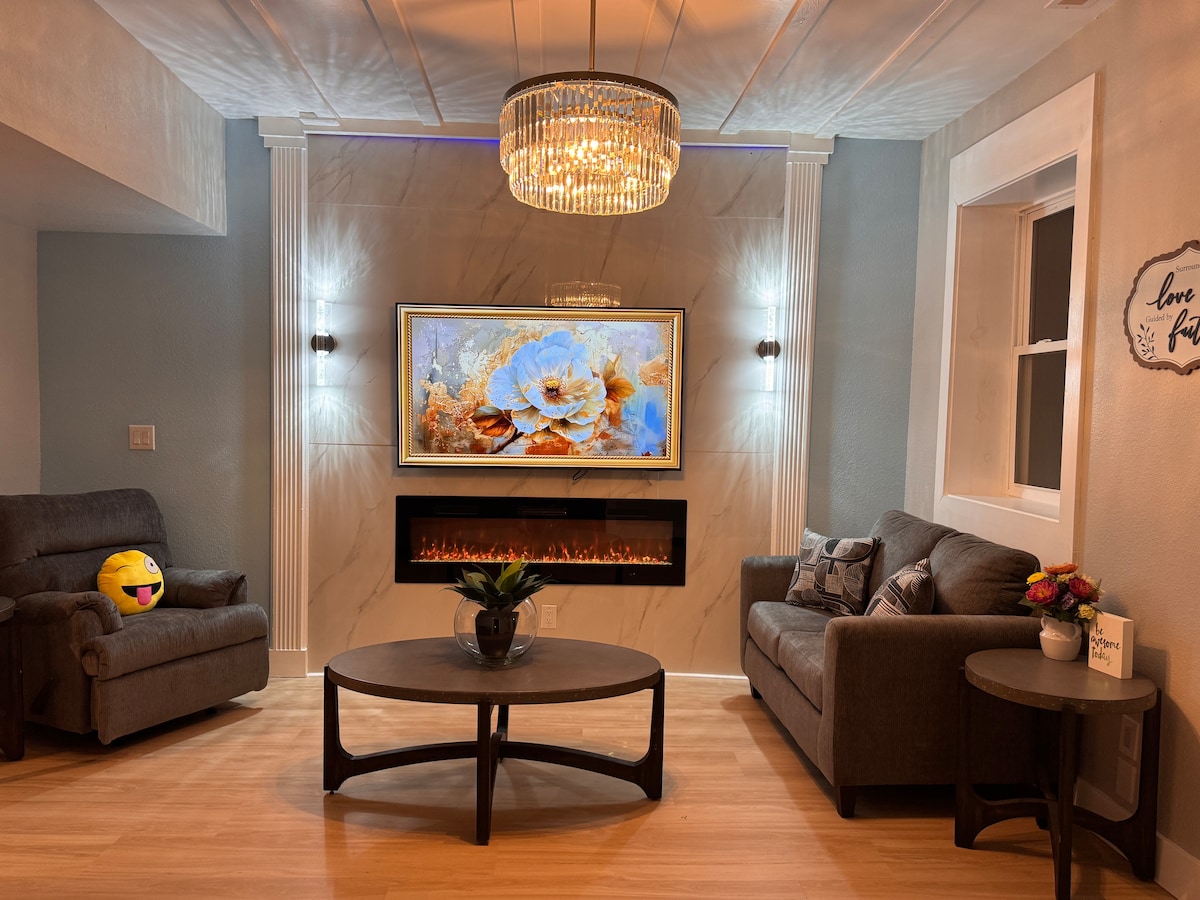 Newly constructed studio in Historic Downtown Maysville. Fully furnished including TV, kingsize Murphy bed, couch, bar stools, recliner, dishes, pots and pans, linen, towels, blankets, silverware, etc. All new stainless steel appliances. A stainless steel kitchen backsplash. Granite countertops, Dishwasher. Clothes washer and dryer and central HVAC. Located in the center of Maysville’s Entertainment Destination Center.
