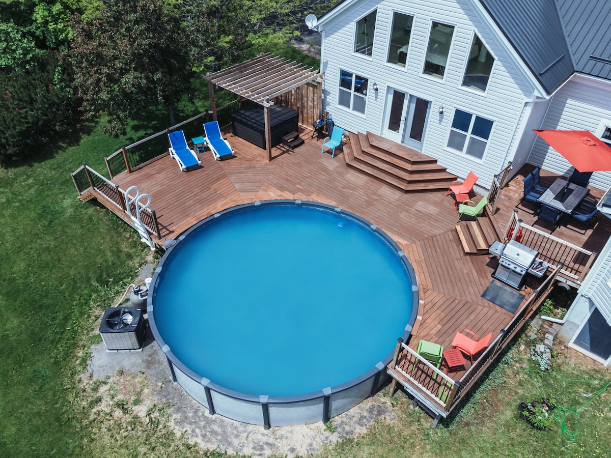 Cottage near Debert River with a bay view Debert airport is 9 mins drive Hot tub, above-ground pool (available during summers only) & BBQ 5 Bedrooms with 1 King and 4 double beds 3 Full bathrooms Fully equipped kitchen Exciting, fun-filled corn maze adventure. Beautiful fenced garden with tiered back deck Living room with proper sitting arrangements Fresh linens, towels, toiletries, & essentials provided Professionally cleaned every time On-driveway parking for 10 vehicles