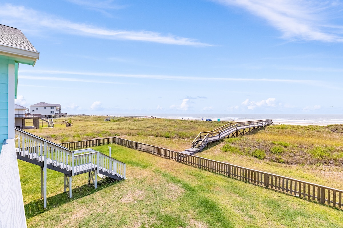 2 տախտակամած, պատիո և տեսարաններ ՝ լողափնյա Տեխասի հանգիստ