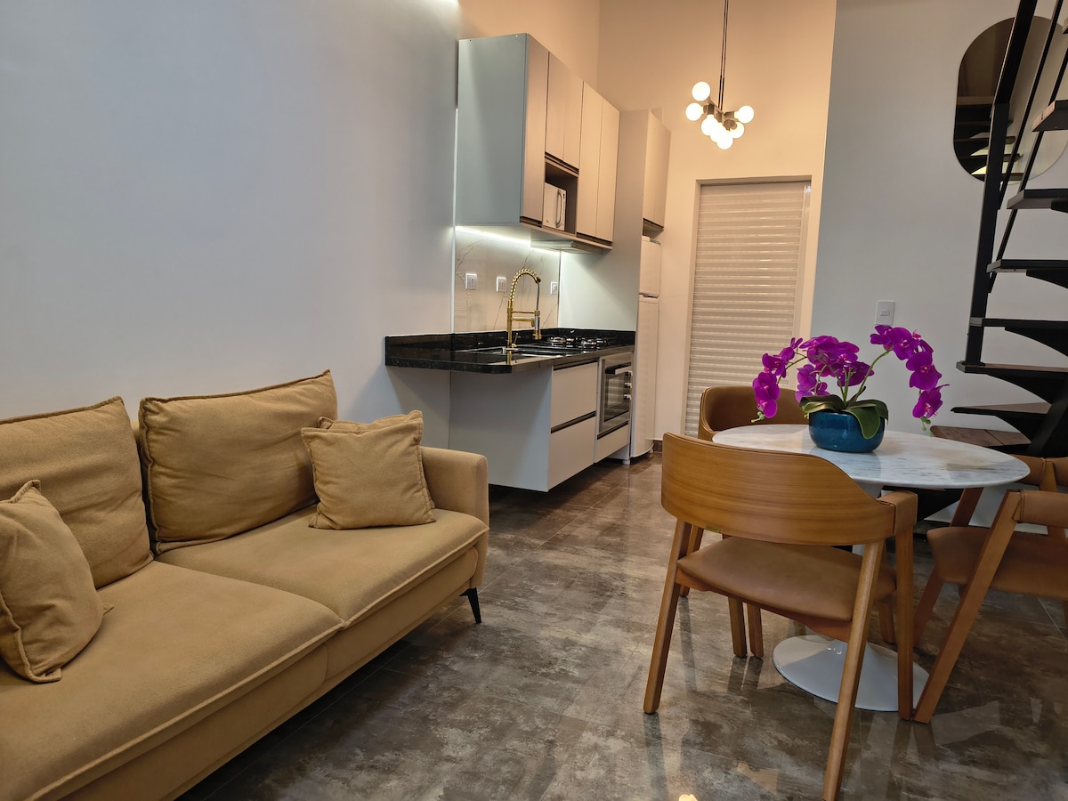 AP tipo Studio, ambiente pequeno e aconchegante com internet WiFi! Por ser no último andar, possui escadas! Até 7 pessoas. Valores adicionais a partir da 2ª até a 7ª pessoa. Condomínio possui: Piscina, Play ground, Cancha, Portaria, Churrasqueiras, salão de jogos; WiFi recreativo. É necessário exame médico para uso da piscina a partir de 01/12/2025, toda 2ª feira é fechada para limpeza! Fechadura digital com senha informada pela anfitriã. Não fornecemos roupas de cama e banho.