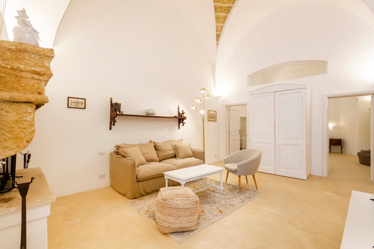 Il complesso è parte di una antica masseria ristrutturata dall' Architetto Luca Zanaroli. L'appartamento si trova nel cuore del centro storico di Patù, antistante la storica Piazza Indipendenza a pochi minuti dal mare e dai maggiori centri d’interesse storico e culturali. Informiamo la nostra gentile clientela che nella nostra struttura è presente il rilevatore di gas combustibile ed è igienizzata e sanificata seguendo le linee guida del Ministero della Sanità.