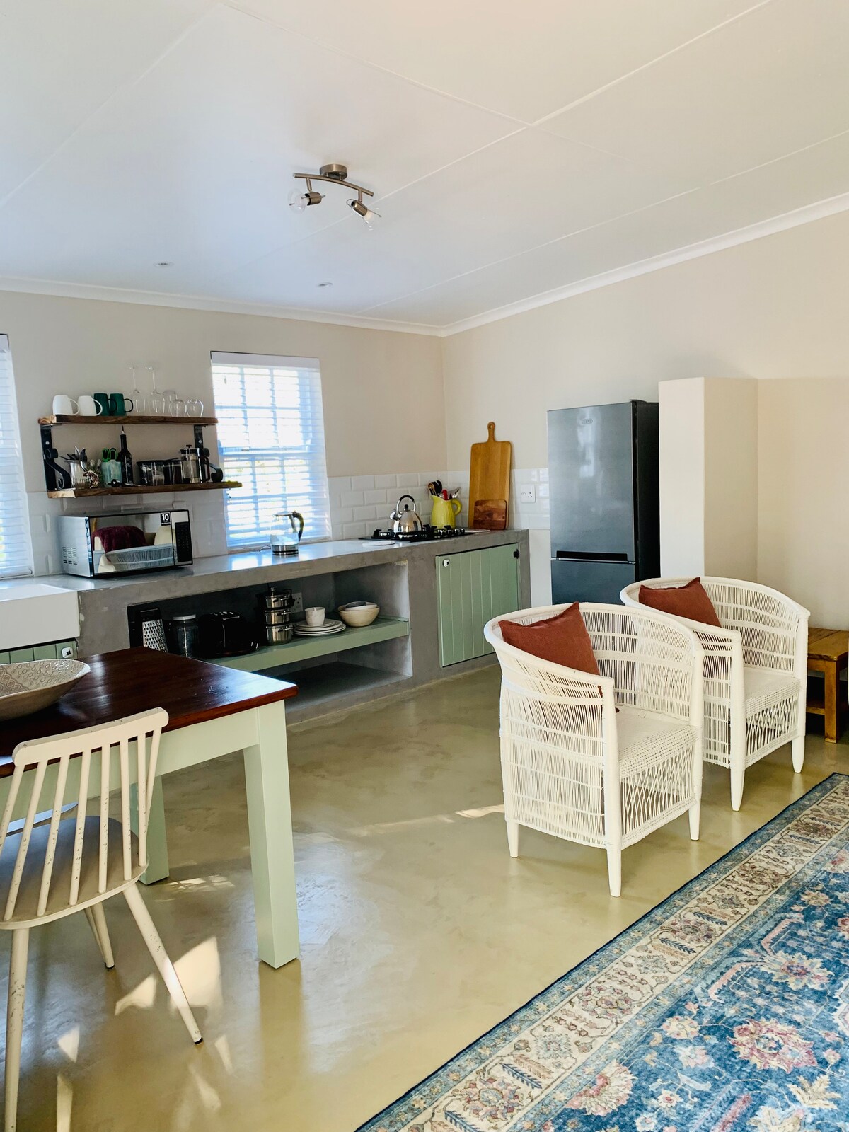 Այս մասնավոր, բաց հատակագծով, ինքնասպասարկվող ֆերմերային քոթեջը հին աշխարհի հմայքն է առաջարկում նորաձև, մինիմալիստական շունչով։ Նախատեսված է էկոլոգիապես գիտակցված ապրելու համար ՝ այն աշխատում է նվազագույն էլեկտրաէներգիայով և ունի սառնարան, ջրի հովացուցիչ, գազօջախ և գազի գեյզեր ։ Թեև չկա հեռուստացույց, Wi - Fi կամ ցանցի ուժեղ ծածկույթ, այն լիցքաթափվելու և անջատելու կատարյալ վայր է ։ Ամբողջ շքեղ սպիտակեղենով և հարմարավետ մանրամասներով քոթեջն առաջարկում է խաղաղ, հարմարավետ հանգիստ. ձեր իդեալական տունը տնից հեռու ՝ ագարակում:
