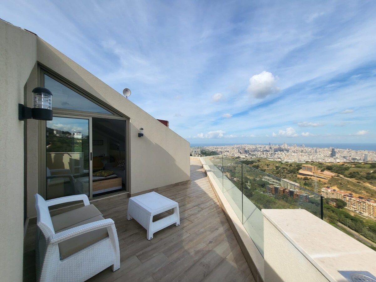 Քաղաքից հանգիստ փախուստ եք փնտրո ՞ ւմ Հանգստանալու, հանգստանալու և ուժերը վերականգնելու տեղո ՞ ւմ ։ Այցելեք մեր լուսավոր լոֆթը և վայելեք հիասքանչ տեսարան դեպի լիբանանյան ափամերձ գոտի ՝ կախարդական մայրամուտով ։ Մեկ սենյականոց բնակարան ՝ հյուրասենյակով, խոհանոցիկով, լոգասենյակով և մեծ բացօթյա տարածքով ։ Իդեալական տարածք հեռավար աշխատանքի համար և կատարյալ վայր ՝ զուգընկերոջ կամ ընկերների հետ վայելելու համար ։