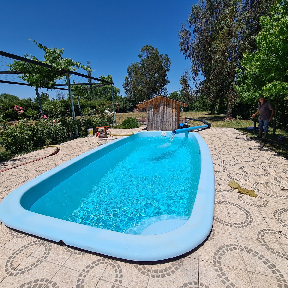 Հարմարավետ քոթեջ գյուղական վայրում, կահավորված, թռչունների, մրգերի և հարազատ ծառերի առկայություն, լողավազան ամառային ժամերին: Ջակուզիի առավելություններ. Ջրի ջերմությունն օգնում է նվազեցնել աղմուկը և բարելավել մարդու շրջանառությունը, ինչը կարող է նվազեցնել ցավն ու խստությունը: Ջերմությունը և ջրի ճնշումը օգնում են թուլացնել ձեր մկանները և նվազեցնել լարվածությունը ձեր մարմնում: Ջրի ջերմությունը հանգստացնում է մարմինն ու միտքը, քանի որ շրջանառությունը բարձրացնում է իմ մարմինը և իջեցնում է արյան ճնշումը:
