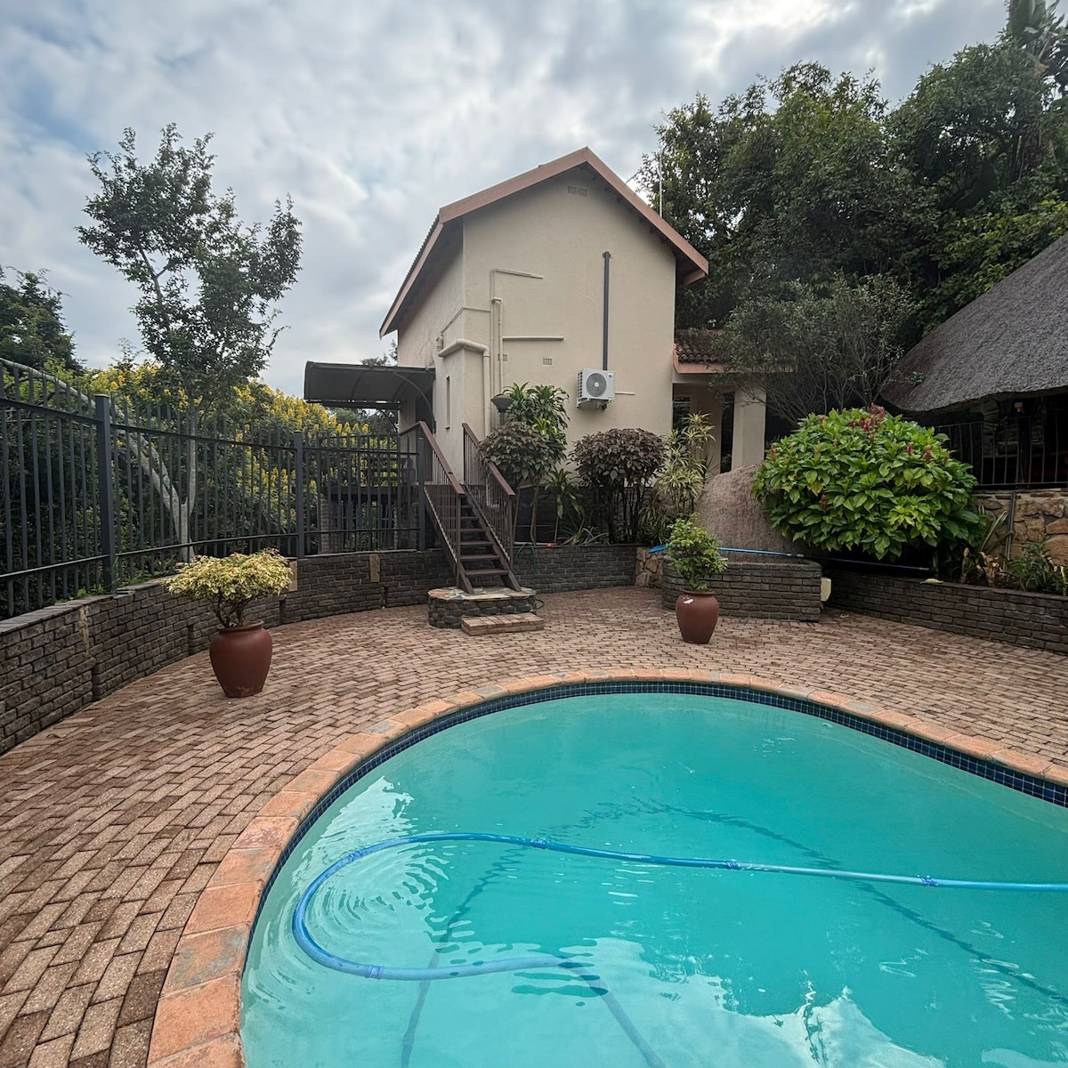 Համով կահավորված, ինքնասպասարկվող, երկհարկանի, 5 քունատ սենյակով, Մբոմբելայում (Նելսպրոյթ) գտնվող պարտեզի բնակարան՝ առանձին մուտքով, ընտանեկան տան հարևանությամբ։ Medi - Cllinic - ին, Ilanga Mall - ին, Tswani University - ին մոտ: KMIA միջազգային օդանավակայանից 30 կմ հեռավորության վրա և INNIBOS փառատոնի տարածքից +/- 100 մ հեռավորության վրա: HDTV ՝ NETFLIX - ով և Wi - Fi - ով (արագությունը ՝ 50 Մբիթ/վ )։ Շարժական սարքերը լիցքավորելու համար նախատեսված USB պորտեր ։ Ուսումնասիրեք Լոուվելդը և Կրյուգերի ազգային պարկը այստեղից: Ապահով կայանատեղի մեկ մեքենայի համար։ Չծխել ։ Օդորակիչ հիմնական ննջասենյակում ։