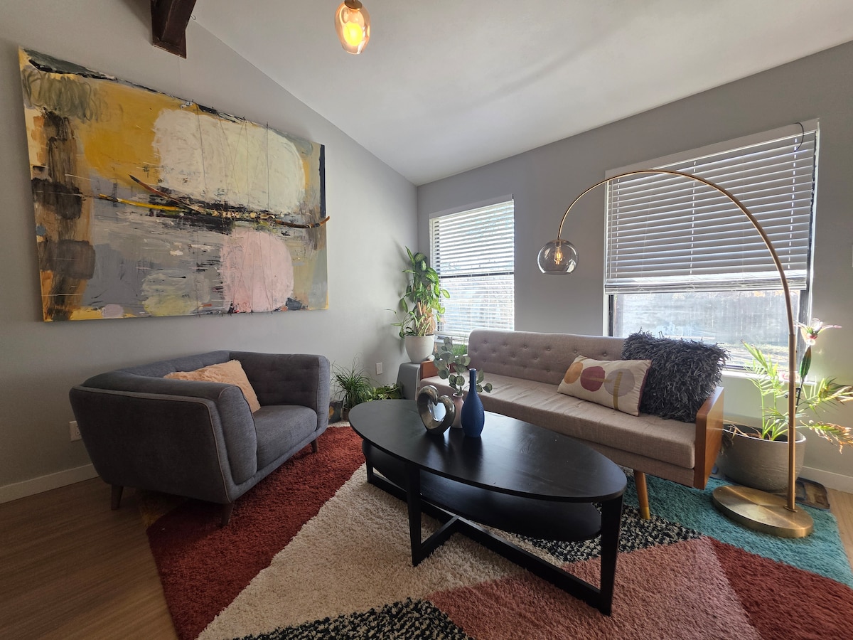 From start to finish our space is a delight! Inside a treasure of bespoke woodwork and thoughtful design creates a stunning 'traditional meets modern' space you will enjoy for its beauty and flow. It offers handpainted shiplap ceilings, real antique cedar/stone walls, custom cabinetry, dimmable lights, full kitchen, easy access outlets and a private entrance from the side courtyard, a lovely place to sit and enjoy our incredible edible yard with berries, figs, fruit, herbs, &veggies growing.