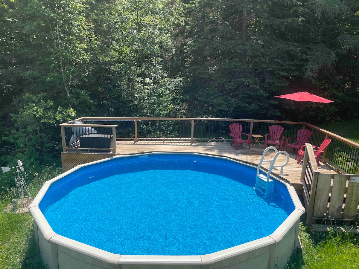 Welcome to our beautiful Muskoka Retreat, just 20 mins from the town of Huntsville. There is a complimentary Provincial Park Pass provided, between check in and check out times. The decor is fresh and intimate, with warm wood accents. Our property is surrounded by trees, on 10 acres of forested land, where you can enjoy the company of many species of birds and wildlife. The guest house is completely separate and private, from our home, which is 50 feet away, and it was newly built in 2022.