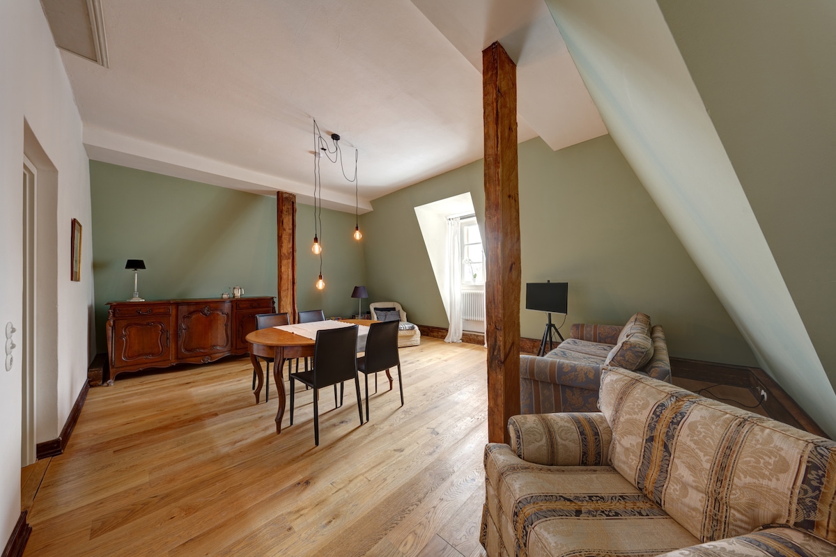 Հրավիրում ենք ձեզ մեր հարմարավետ ձեղնահարկով բնակարան, որտեղից բացվում է հիանալի տեսարան ։ Սենյակ կա մինչև 5 հոգու համար ։ Բնակարանը հագեցած է այն ամենով, ինչ անհրաժեշտ է Մեկլենբուրգ - Վորպոմմերնի սրտում հանգստանալու համար ։ Ամռանը հասանելի է նաև ամբողջ բացօթյա տարածքը կամ բակը ՝ կտուրով և շատ կանաչ տարածքով ։