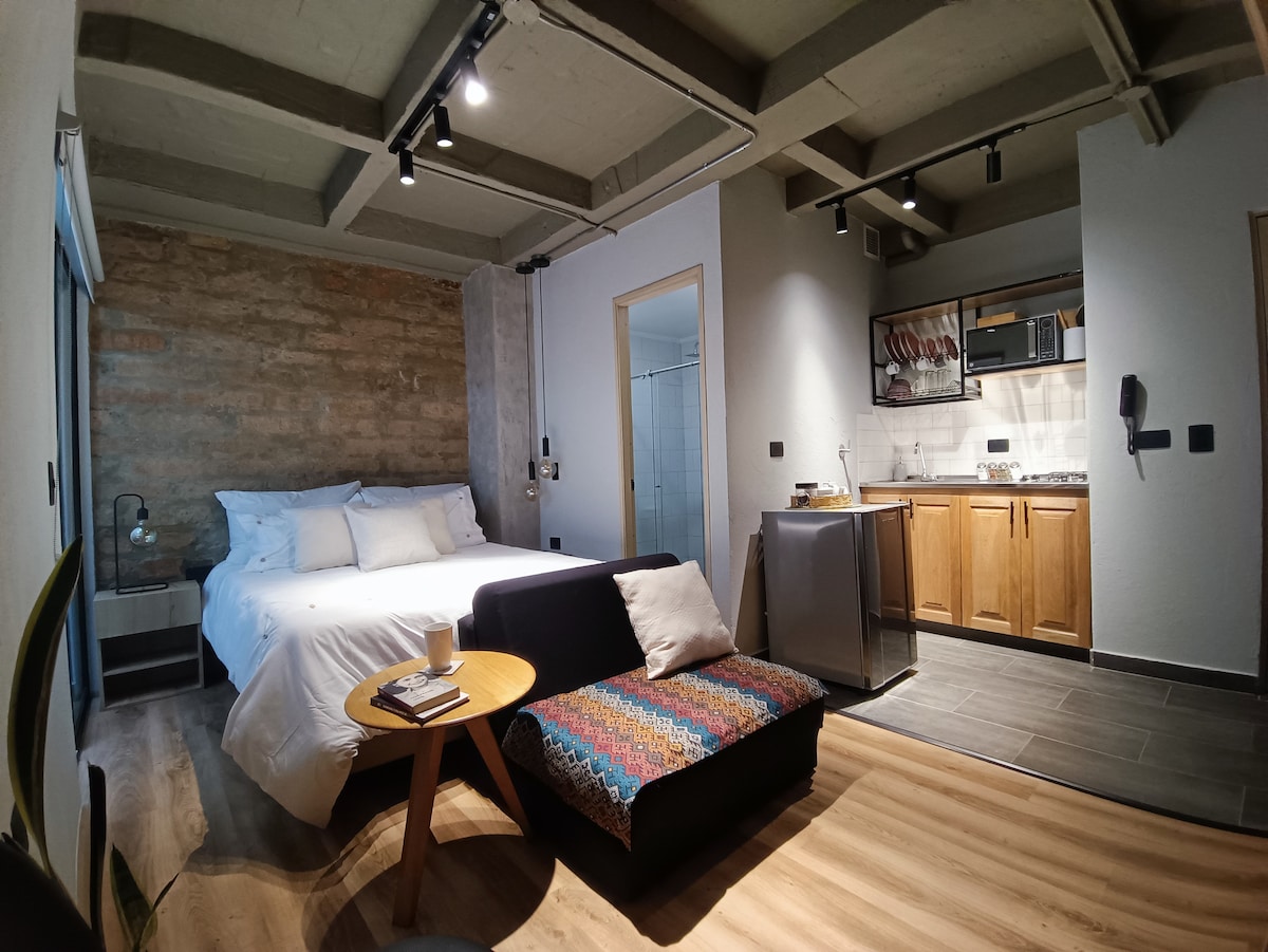 Բարի գալուստ մեր արդյունաբերական լոֆթ Էլ Պոբլադոյում ՝ Պրովենցայից մի քանի քայլ հեռավորության վրա ։ Վայելեք ժամանակակից տարածք ՝ բարձր առաստաղներով, համայնապատկերային պատուհաններով և պարտեզի տեսարաններով առանձին պատշգամբով ։ Այն ունի մեծ մահճակալ, արագ Wi - Fi, լիովին կահավորված խոհանոց և հատուկ աշխատանքային տարածք ։ Լավագույն ռեստորաններից, սրճարաններից և բարերից ընդամենը մի քանի րոպե հեռավորության վրա ։ Ինքնուրույն ժամանում, շուրջօրյա անվտանգություն և անվճար կայանատեղի ։ Ամրագրեք հիմա ։🚀