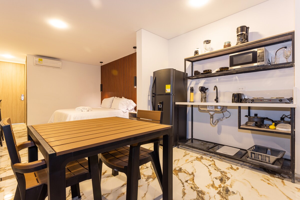 Հանգստացեք Մանիլայի սրտում գտնվող այս նրբաճաշակ, ժամանակակից բնակարանում ՝ Էլ Պոբլադոյում, Պրովենցայից, Պարկե Լլերասից և լավագույն բժշկական կենտրոններից մի քանի րոպե հեռավորության վրա, ինչպիսիք են Clínica Medellín – ը, Clínica Las Vegas - ը և Clínica El Rosario - ն: ✔Վայելեք պրեմիում սպիտակեղենով մեծ մահճակալ, ✔Նորաձև լոգասենյակ ՝ ներս մտնող ցնցուղով, ✔Սմարթ հեռուստացույց, ✔Գերարագ մանրաթելային Wi - Fi ✔Լիովին կահավորված խոհանոց ։ ✔ Առանձին պատշգամբ ✔Օդորակում ✔ Տաք ջուր ✨Կատարյալ է կարճաժամկետ այցերի, գործնական ուղևորությունների կամ վերականգնման համար ։