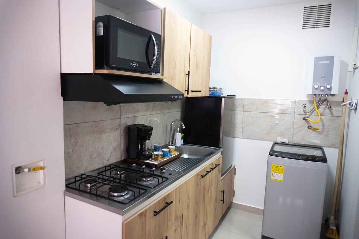 Հարմարավետ կահավորված բնակարան ՝ 30 քառ. մետր մակերեսով, Մեդելյինի լավագույն տարածքներից մեկում ՝ Էլ Պոբլադոյում ։ Հիանալի վայր է: Լիովին կահավորված խոհանոցիկ, ինտերնետ 200 մեգաս, սմարթ հեռուստացույց, տաք ջուր: Մետրոյի կայարանի մոտ, հիմնական առևտրի կենտրոնները քայլելու հեռավորության վրա: Դուք նաև ունեք անվճար մուտք դեպի ՄԱՐԶԱՍՐԱՀ և Coworking տարածք ՝ անվճար ինտերնետով և սուրճի խանութով, որպեսզի վայելեք աշխարհի լավագույն սուրճը: