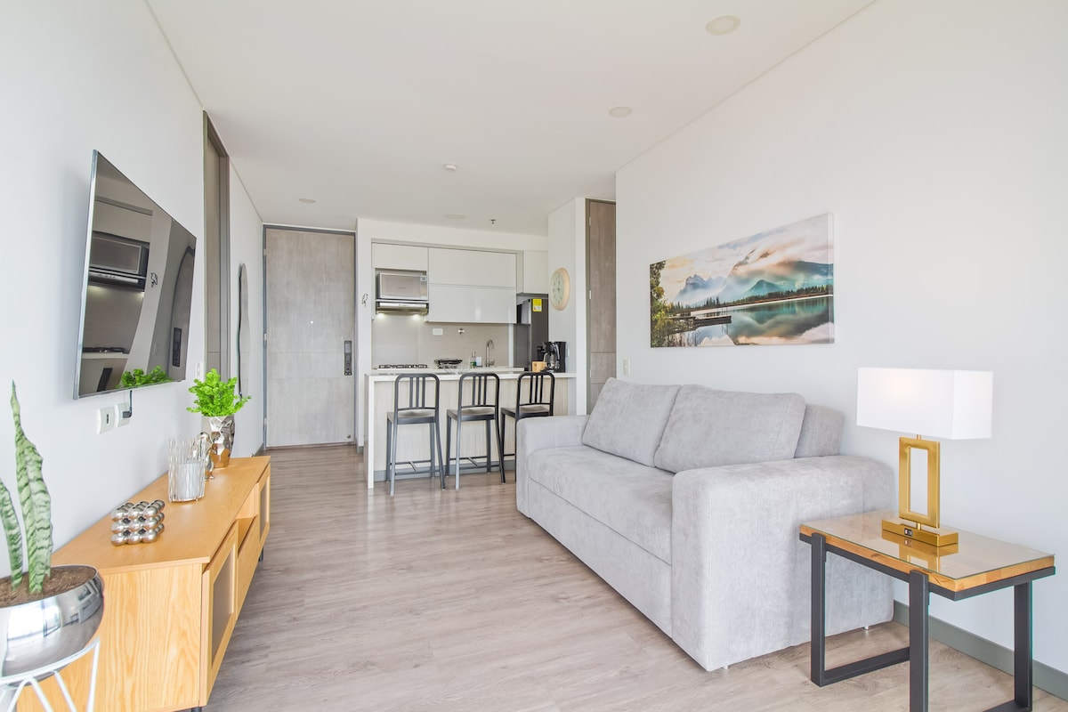 En este apartamento estarás en uno de los mejores ambientes de Envigado, en un edificio nuevo, a solo unos pasos del Mega Mall Viva Envigado, con diversas tiendas, gastronomía local e internacional, muchos más servicios y facilidades de transporte público y privado, en uno de los barrios más tranquilos, tradicionales y mágicos de Envigado. No olvidarás esta maravillosa experiencia, siempre querrás volver. Lugar perfecto para compartir en familia, amigos o para realizar home office.