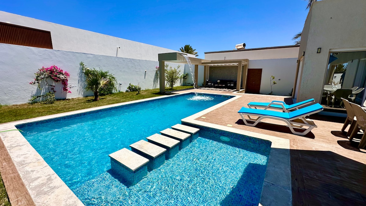 🌴 Bienvenue à Villa Eden – Votre parenthèse de tranquillité sous le soleil de Djerba ✨ Les espaces • 190 m² de confort moderne et raffiné • 3 grandes suites avec literie haut de gamme • 3 salles de bain, 🌿 Le jardin et la piscine • Piscine privée sécurisée • Terrasse avec salon extérieur et transats • Espace barbecue pour vos repas conviviaux 🏡 Équipements • Cuisine entièrement équipée (four, micro-ondes) • Climatisation dans toutes les pièces • Wifi haut débit • Machine à laver