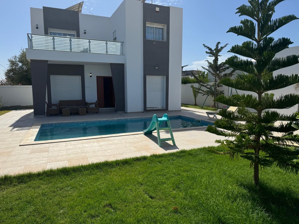 Լողավազանով մեր գեղեցիկ վիլլան գտնվում է լողափից 60 մետր հեռավորության վրա ։ Իդեալական է ընտանիքի կամ ընկերների երեք զույգերի համար ։ Վիլլան ունի երեք երկտեղանի ննջասենյակ, մեծ հյուրասենյակ ՝ բուխարիով , մեծ կտուր ՝ անտառապատ այգով և բացօթյա մանղալով,երկու լոգասենյակ ՝ 3 զուգարան և կահավորված խոհանոց ։ Խանութների և հյուրանոցային հարմարությունների մոտ (մասնավոր լողափեր,լողավազաններ,բարեր,ռեստորաններ,ՍՊԱ և մերսումներ) և Կազինոյի հետևում ։ Բարի գալուստ Ջերբա ։