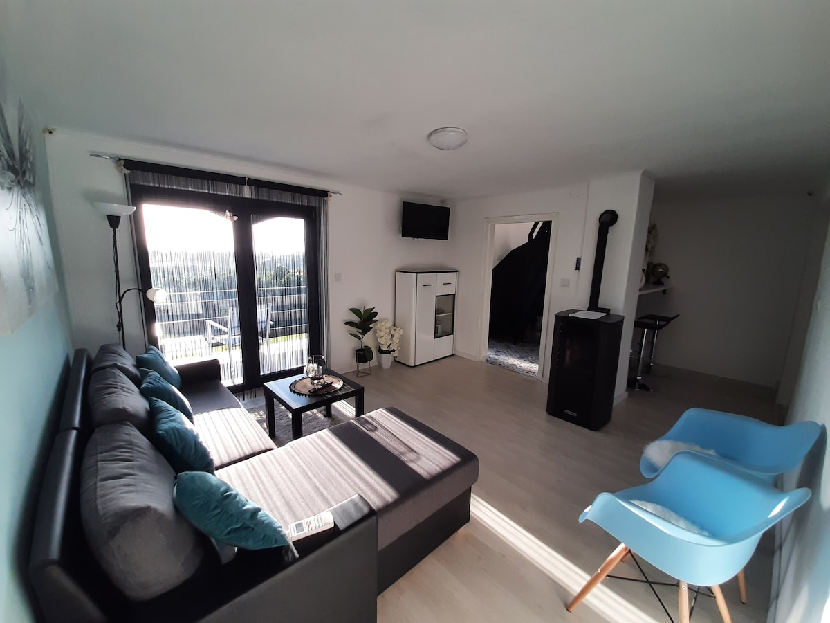 Escape to a peaceful retreat surrounded by nature, perfect for relaxing getaways. Our cozy holiday home offers a blend of comfort and outdoor experience, featuring a stylish lounge area, private outdoor space, and unique amenities designed for both fun and relaxation. Whether you're enjoying a quiet evening by the fire or exploring nearby nature, this is the ideal place to unwind and recharge. Perfect for couples, small groups, or anyone looking for a unique and memorable stay.