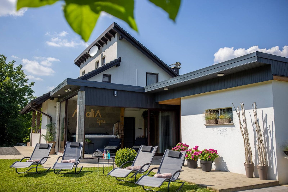 Բացահայտեք խաղաղություն և հանգստություն մեր գեղեցիկ գյուղական հանգստյան տանը, որը գտնվում է փարթամ լանդշաֆտի մեջ ։ Կատարյալ է հանգստի, ընտանեկան այցերի կամ բնության գեղեցկությունն ուսումնասիրելու համար Դրավա գետի երկայնքով և Վարազդին հին քաղաքի մոտակայքում ։ Նկարագրություն: 3 հարմարավետ ննջասենյակ և 4 լոգասենյակ Բացօթյա լողավազան Ընդարձակ բացօթյա պատիո Ջակուզի, սաունա և ուսումնական սարքավորումներ Լողավազանի սեղան, ֆուտսի սեղան, սեղանի թենիս Անվճար Wi - Fi Բացօթյա ռոտիսերիա Ծաղիկներով ռոմանտիկ այգի Ձեր կատարյալ գյուղական հանգիստը սպասում է ձեզ ։
