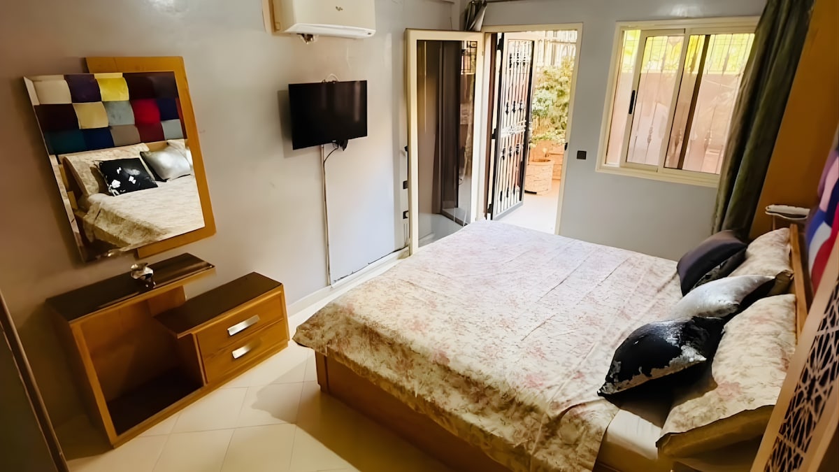 Բարի գալուստ ձեր մասնավոր բնակարան, որը գտնվում է հինգ լողավազանով հանգիստ, փակ համալիրում։ Մարոկկոյի ջերմությունն ու ժամանակակից հարմարավետությունը միախառնող այս երկսենյականոց հանգստի վայրն առաջարկում է հանգիստ, տարածք և տեղական հմայք։ Երկու սենյակներն էլ լուսավոր են և գրավիչ, լողավազանի և պարտեզի տեսարաններով և բավականաչափ բնական լույսով։ Դարպասներից դուրս կբացվի քաղաքի իրական թաղամասը՝ սրճարաններով, խանութներով և ավանդական շուկայով։ Դա Մարաքեշի առօրյա կյանքի իրական համն է հանգստավայրային հարմարավետությամբ։