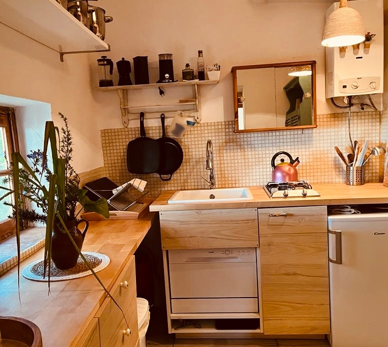 Տարածեք ավելի քան երկու հարկ, այն ունի առաջին հարկում մեծ հյուրասենյակ բուխարիով, սարքավորումներով հագեցած խոհանոցիկ, զուգարանով լոգասենյակ և ննջասենյակ երկտեղանի մահճակալով: Վերևում կա երկու առանձին ննջասենյակ ։ Բացօթյա տարածքում կա առանձին լողավազան, երկու մանղալ (մեկը ՝ փայտածուխից, մյուսը ՝ գազով և հրաբխային քարով), խորտկարան և պտղատու ծառեր ։