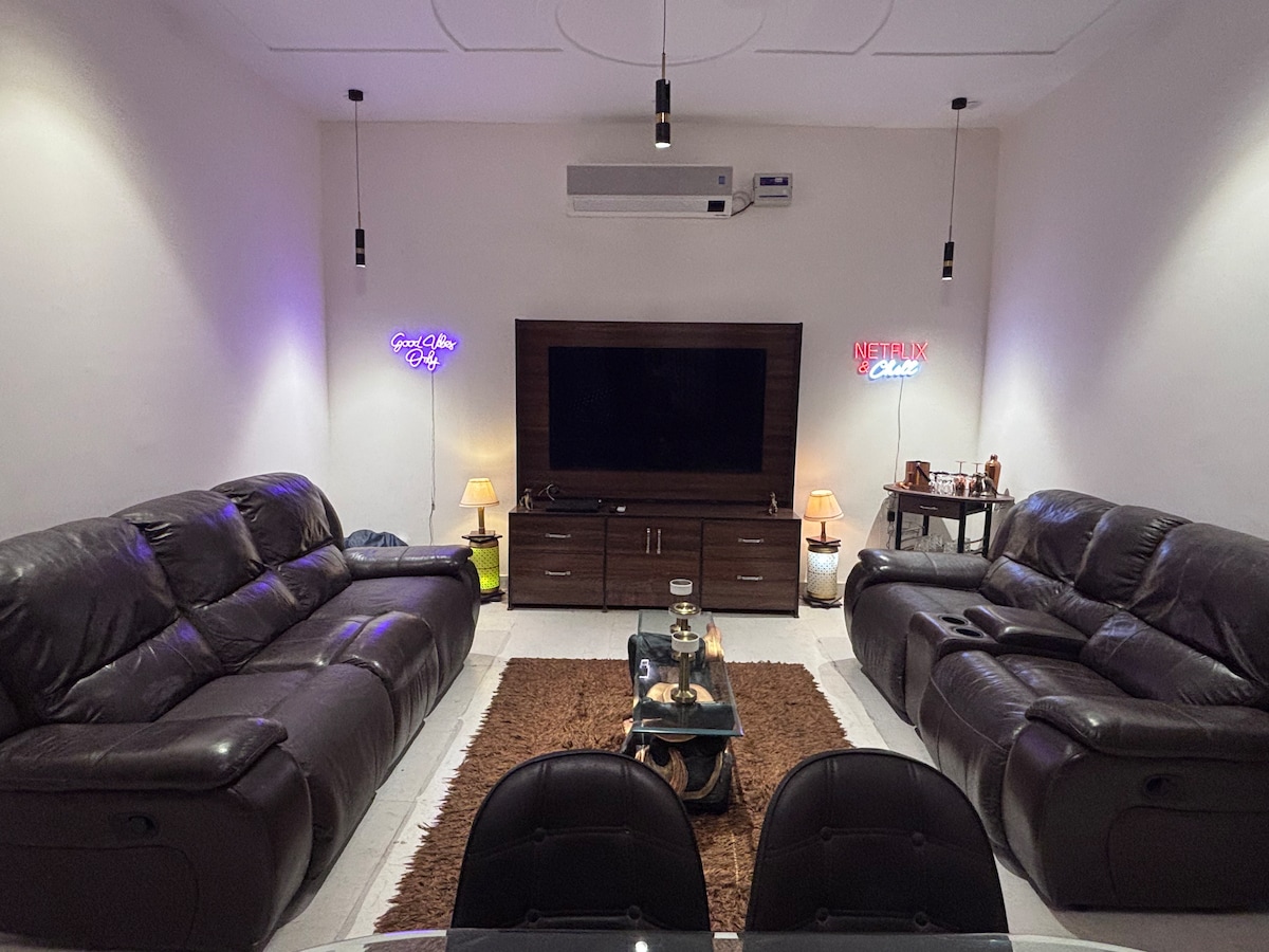 Յուրահատուկ իսկական ջունգլիների հանգստի փորձառություն Մեերուտում ։ Փորձեք դիտել ֆիլմեր 65 դյույմանոց OLED կինեմատոգրաֆիական էկրանին ։ Զգացեք Royal Luxury - ը, որը ներկայացվում է Recliners - ի, հարմարավետ ննջասենյակների, Mini Bar - ի հետ Գտնվելու վայրը հիանալի է Get toghther-ի, ընտանեկան զբոսանքների համար Միրութ Դելի Բայփաս ճանապարհին։ Հանգիստ քաղաքի բնակիչների համար և գեղատեսիլ վայր ճանապարհորդների համար ՝ Meerut - ի համար ։ Բաղկացած է լիովին գործառնական խոհանոցից, 3 ննջասենյակից, հյուրասենյակից, ճաշասենյակից, մինի բարից, 3 պատշգամբից և բաց պատշգամբից։ Հետևեք մեզ Insta@ Terminal.stay