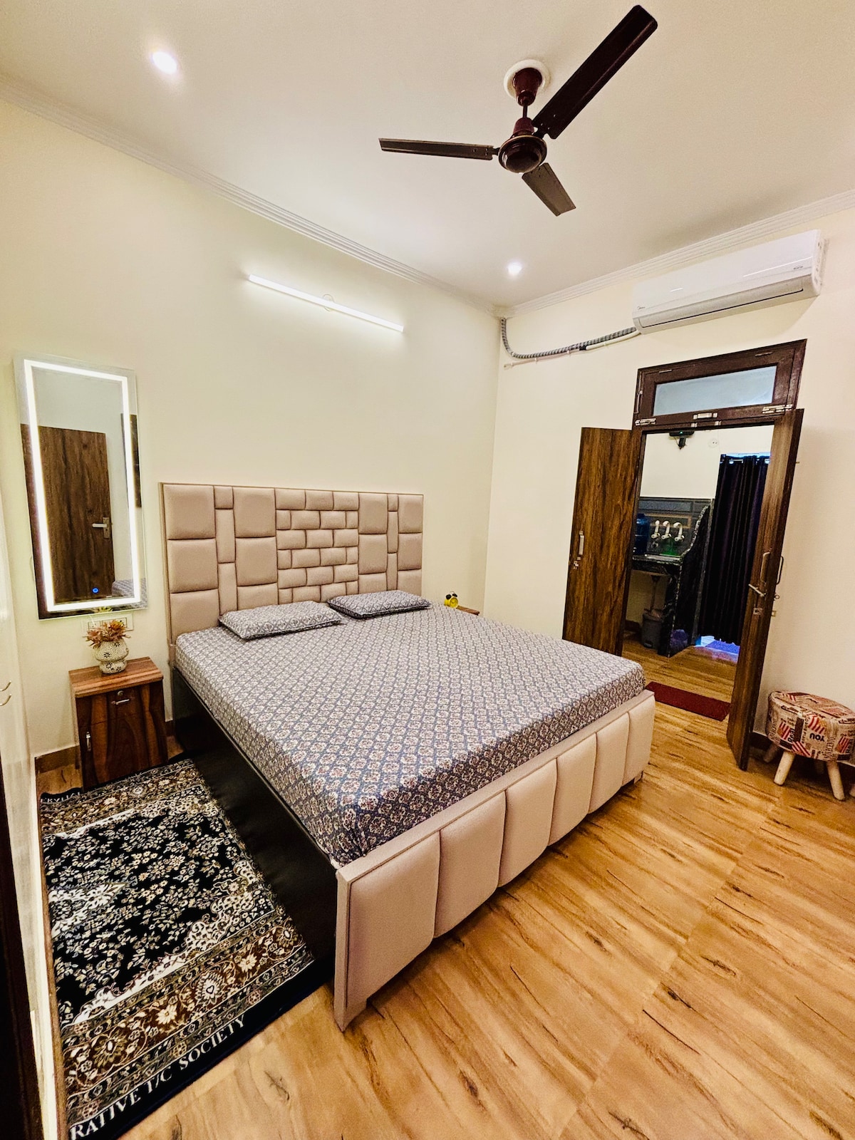 ✨ Ընդարձակ բնակելի տարածք ՝ պլյուշ նստատեղ, ջերմ լուսավորություն և սմարթ հեռուստացույց ՝ հարմարավետ մթնոլորտի համար ։ ✨ Elegant Dining & Work Nook – Կատարյալ է սննդի կամ հանգիստ սուրճի ընդմիջման համար: ✨ Ժամանակակից ինտերիեր ՝ շքեղ փայտե դեկոր, յուրահատուկ արվեստի գործեր և հանգստացնող միջավայր ։ ✨ Գտնվելու վայրը ՝ Noida Sector 71 մետրոյի, առևտրի կենտրոնների, սրճարանների և բիզնես հանգույցների մոտ ։ ✨ Լիովին կահավորված ՝ Wi – Fi, օդորակիչ և բոլոր հիմնական պարագաները անխափան այցի համար ։ ✨ Իդեալական է տոնակատարությունների և արձակուրդների համար