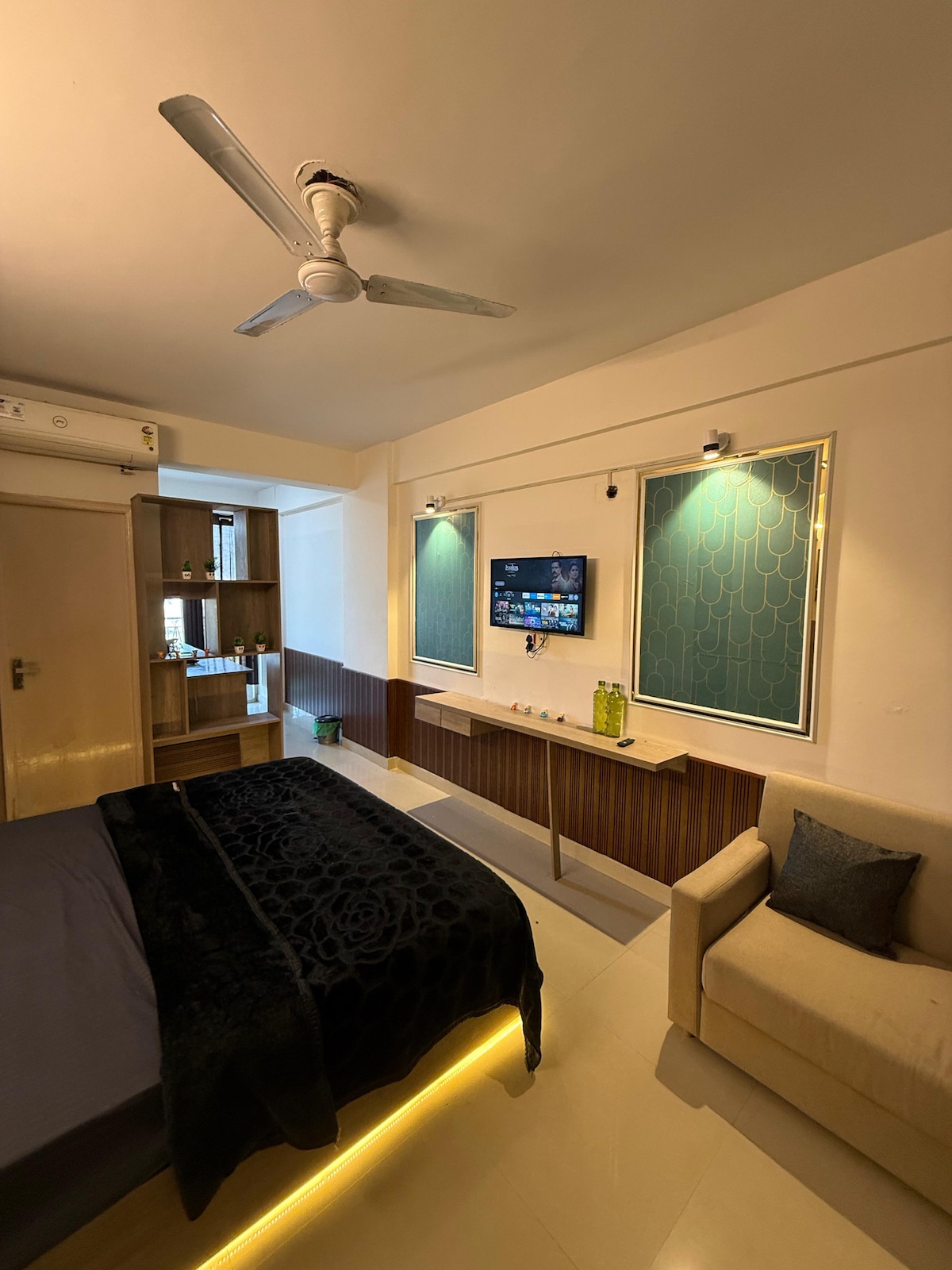 Welcome to our clean and comfortable 2BHK apartment with a study room in Landcraft Metro Homes, Ghaziabad. The flat is fully furnished and suitable for families and working professionals. It has a well-equipped kitchen, living area, balcony, and high-speed Wi-Fi. The society is safe and peaceful, with easy access to NH-58 (Meerut Road). Ideal for short and long stay.