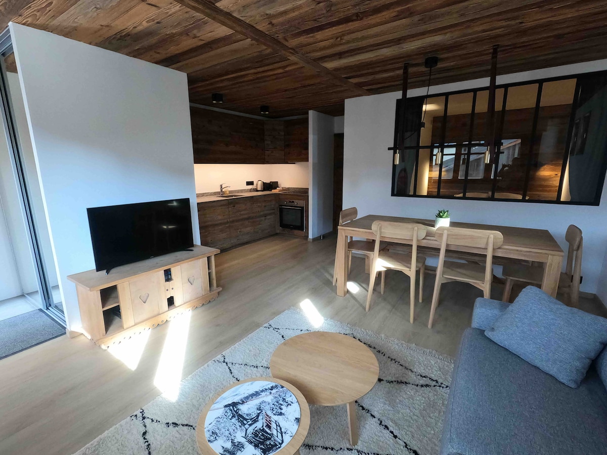 Վայելեք ջերմ և խաղաղ տուն գյուղի սրտում ։ Իդեալական է, գտնվում է եկեղեցու ստորոտում և սալաքարե նրբանցքներում ։ Շամոիսի գոնդոլից ընդամենը 100 մ հեռավորության վրա ։ Բնակարան, որը կարծես ժամանակակից շալե լինի ։ Լիովին զարդարված է հին փայտով և գրանիտով ։ Ընդարձակ հյուրասենյակ ։ Բազմոց հյուրասենյակում ։ Բացեք խոհանոց ՝ ինտեգրված տարրերով ։ Սենյակ ՝ երկտեղանի մահճակալով, որը բացվում է հսկայական արհեստանոցի վրա ։ Լոգասենյակ ցնցուղով ։ Առանձին զուգարան ։ Ողջունում ենք դռնապանին ։