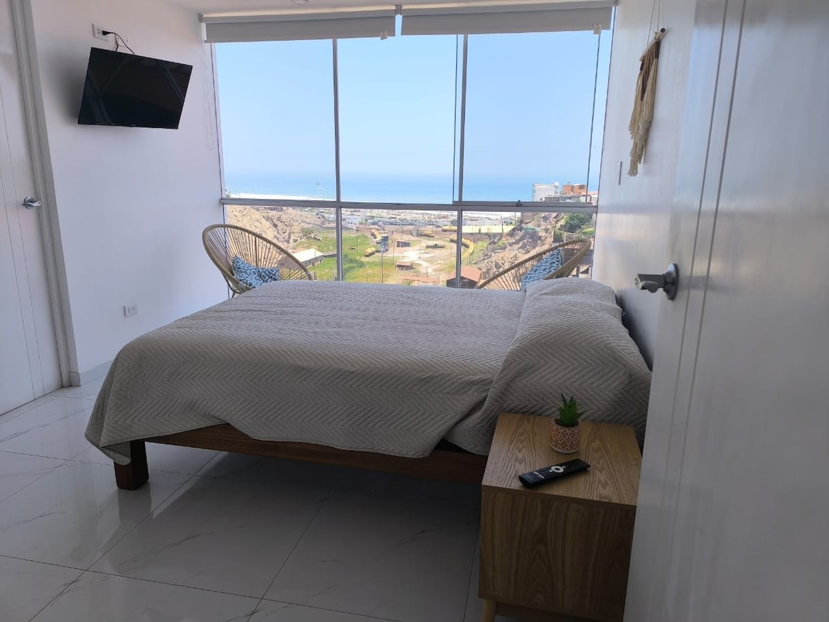 Un departamento cerca al mercado y zona comercial, tendràs una habitación con vista al mar y todo equipado, el dpto está ubicado en el cuarto piso lo que le da una vista increíble.