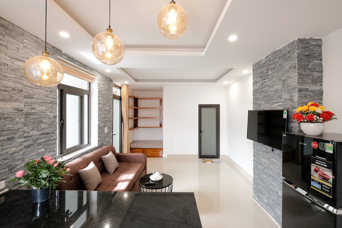 Step into the Serene Hideaway, where rustic charm meets modern comfort. This apartment offers a peaceful escape with handcrafted wooden interiors, soft lighting, and a relaxing atmosphere. It’s more than just a stay, it's a personal retreat, blending custom furniture, warm tones, and tranquility. Every detail of this apartment has been carefully crafted for your comfort. Perfect for business, a romantic getaway, or experiencing Saigon like a local. A serene oasis in the heart of the city.