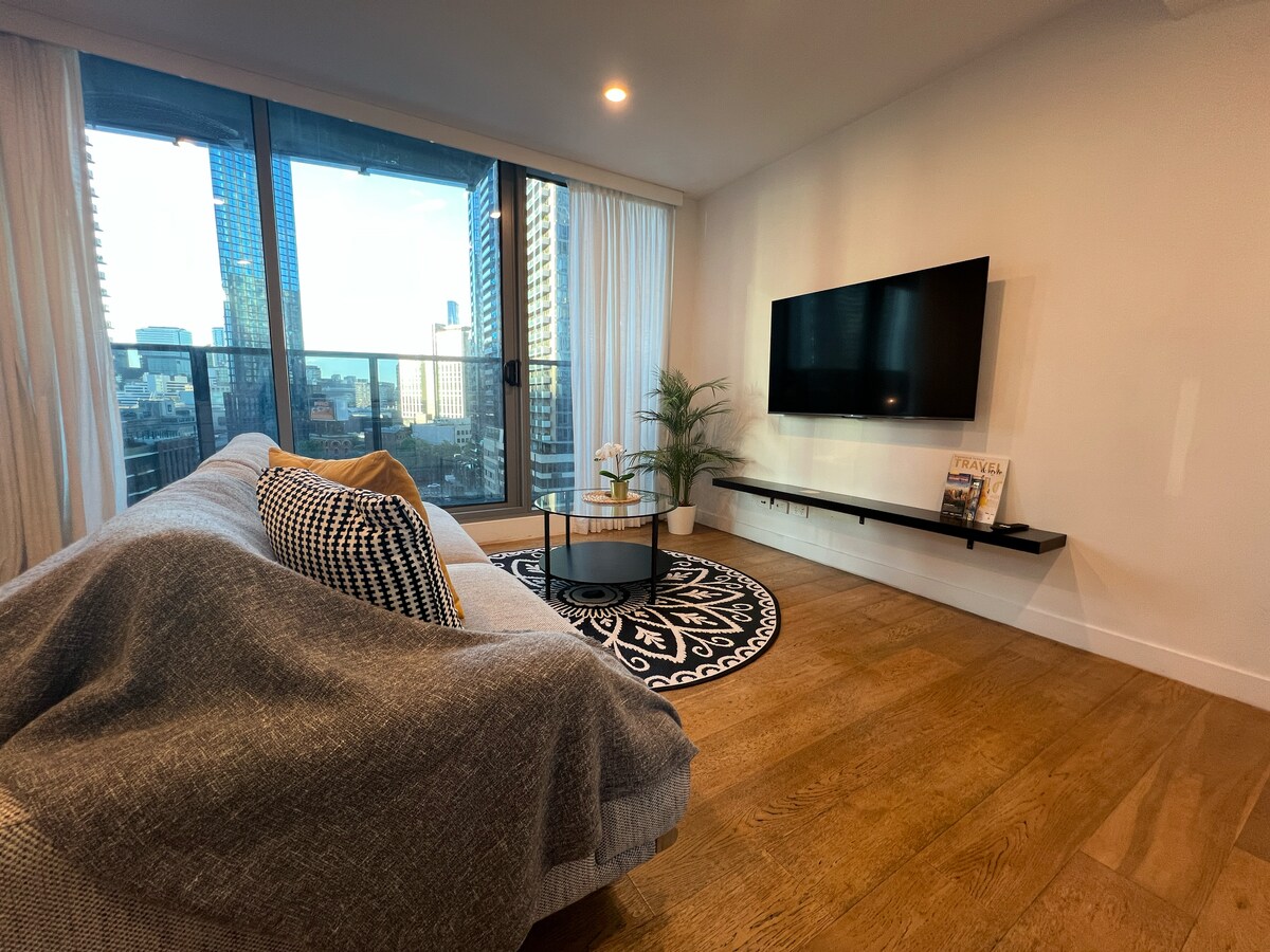 Սեփական բնակարանի հարմարավետությունից ներծծվեք քաղաքի գեղեցիկ տեսարաններով հատակից մինչև առաստաղը ձգվող պատուհաններով ։ Այս ժամանակակից տարածքը տեղավորում է մինչև 4 հյուր ՝ իդեալական զույգերի, փոքր ընտանիքների, ընկերների խմբերի կամ հարմարավետ հանգիստ փնտրող բիզնես ուղևորների համար ։ Տան հարմարավետությամբ և կենտրոնական տեղադրությամբ այն կատարյալ է և ՛ կարճատև, և ՛ երկարատև այցերի համար ։ Տարածքն ընդամենը մի փոքր հեռու է Մելբուրնի լավագույն տեսարժան վայրերից ։ Մոտակա տրամվայի ցանցն առաջարկում է հեշտ մուտք դեպի քաղաքի ամենանշանավոր տեսարժան վայրերը