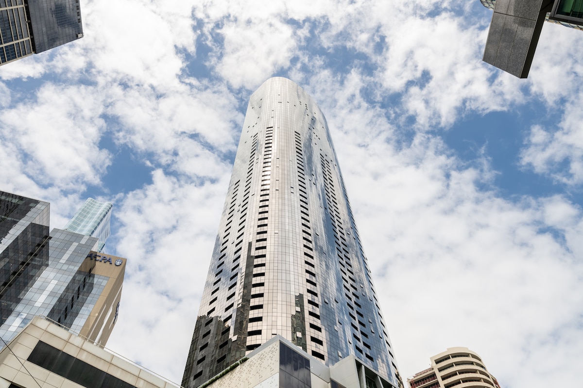 Զգացեք այս ժամանակակից 2 ննջասենյակով, 2 լոգասենյակով բնակարանը, որը գտնվում է հանրահայտ 108 Ավստրալիայի շենքում ՝ Southbank - ում ։ Վայելեք լիովին կահավորված խոհանոց, բաց հատակագիծ ՝ բազմոցով, Սմարթ հեռուստացույցով, ուսումնական անկյունով և ներսի լվացքատունով ։ Գտնվում է Crown Casino - ից, Southbank Promenade - ից, սիրված ռեստորաններից և հասարակական տրանսպորտից ոտքով հեռավորության վրա ։ Կատարյալ է ընտանիքների, զույգերի կամ բիզնես ուղևորների համար ։ Արագ Wi - Fi և աշխատանքային/ուսումնական/ընթերցանության սրահ 70 - րդ հարկում ։ Բարձր աթոռ, պորտակոտ Կորած բանալիների դեպքում կգանձվի 350 ԱՄՆ դոլարի տուգանք