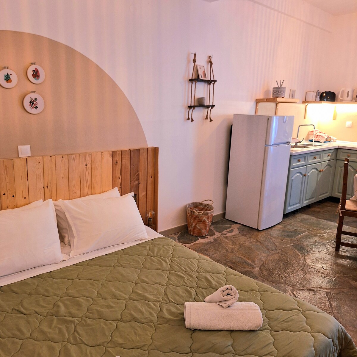 Wake up between Sidari and Agios Stefanos in a bright, boho-style studio that feels like your own peaceful corner of North Corfu. This cosy space is the perfect base for couples who want to explore all the highlights of the area and still come back to quiet evenings under the stars. With easy parking, strong Wi‑Fi and a fully equipped kitchenette, it works just as well for a relaxing holiday as it does for a longer workation stay