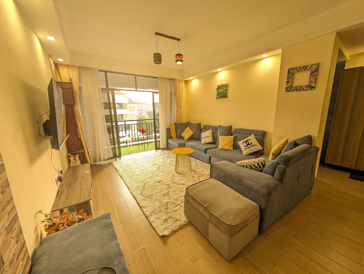 KeeReconnect with loved ones in this family-friendly 2 bedroom apartment. located in a serene area in the outskirts of Nakuru town. Wake up every day to the magnificent view of our Nakuru town & the Nakuru national park. You will have no reason to miss home, a 65 inch smart TV, a 7 seater comfy couch and a wide balcony will make you feel at home Ambient environment, heated outdoor swimming pool & gym plus a great view of the city is what the outdoor offers.