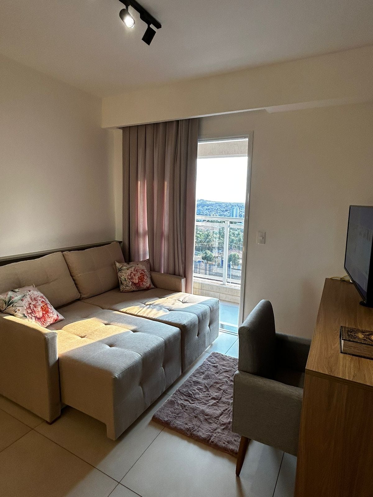Flat mobiliado no Centro, localizado no 12º andar, com conforto, praticidade e excelente localização. Com 1 quarto contendo uma cama de casal, 1 banheiro, sala integrada à cozinha americana equipada, varanda com vista da cidade, ar-condicionado na sala e no quarto, TV e Wi-Fi. Com infraestrutura de hotel, piscina, academia, portaria 24h, elevadores e 1 vaga de garagem com serviço de manobrista. Localização privilegiada: a poucos minutos do Shopping Santa Úrsula, Choperia Pinguim.