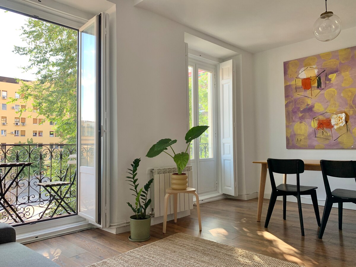 Հոյակապ 45 քառակուսի մետր մակերեսով բնակարան Մադրիդի սրտում ։ Տպավորիչ դիզայնով և ձևավորմամբ, ընդարձակ տարածքներով և բարձր առաստաղներով ՝ բնակարանը հագեցած է այն ամենով, ինչ անհրաժեշտ է Մադրիդում մնալու համար ։ Հյուրասենյակն ունի փողոցին նայող երեք պատշգամբ, որոնք հիանալի պայծառություն են հաղորդում բնակարանին ։ Ննջասենյակում կա առանձին լոգասենյակ և աշխատասեղան ։ Բնակարանից կարող եք քայլել դեպի Մադրիդի գրեթե բոլոր նշանավոր կետերը:
