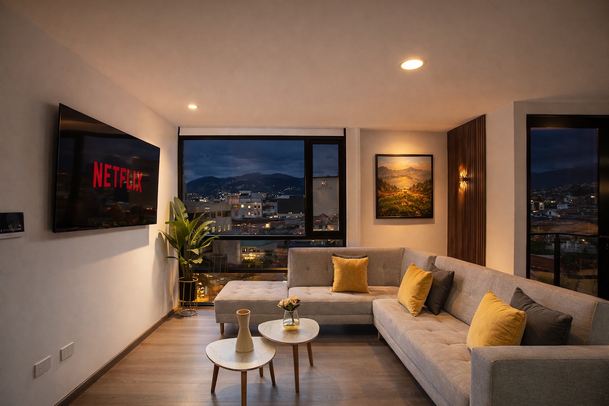 Cuenca stretches out at your feet. This isn’t just a view — it’s THE VIEW. The one only a few get to experience, from a private penthouse designed to connect you with something extraordinary. Here, every moment becomes an experience. ☀️Coffee on the terrace as the city wakes. Sunsets that feel painted just for you. Nights under the stars, by the fire, with laughter and great company. With over 100 m² of private terrace, this is more than a place to stay… it’s something you live and remember.