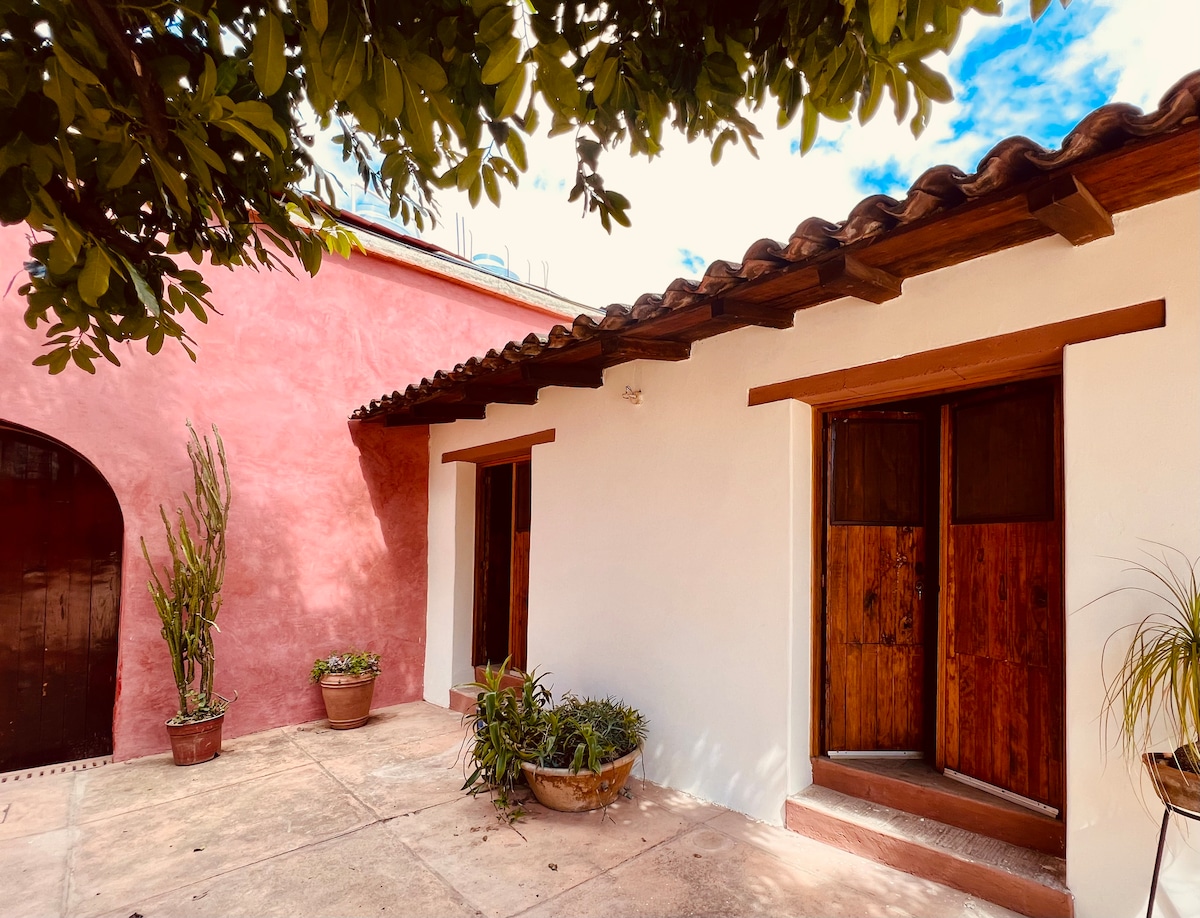 Վայելեք այս հանգիստ, կենտրոնական տան պարզությունը ։ Արտասովոր տեղադրությամբ կարող եք քայլել դեպի քաղաքի կենտրոնում գտնվող լավագույն վայրերը ՝ ջերմ, ընդարձակ վայր, որը լի է լույսով և անկաշկանդությամբ ։ Այստեղ կարող եք հանգստանալ կամ օգտվել ձեզ անհրաժեշտ հանգստության և հարմարավետության հետ աշխատելու համար ։ Այն նայում է գեղեցիկ պարտեզին, որտեղ կարող եք վայելել թռչունների և բույսերի երգը: Ապրեք Oaxaca - ն այս գեղեցիկ վայրից: