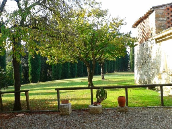 12 - րդ դարի մեր մեկուսի ագարակում ձեր առանձին բնակարանն ունի իր սեփական մուտքը և գտնվում է երկու մակարդակի վրա. խոհանոցն ու նստած տարածքը գտնվում են առաջին հարկում, մահճակալներն ու լոգարանը ՝ վերևում ։ Խոհանոցում մեծ բուխարին շատ բնորոշ է այս հին տներին ։ Ննջասենյակներում ունենք օդորակիչ ։ Այգին յուրահատուկ է ՝ հանգստանալու և վայելելու տեղ ։ Եթե ազատ ամսաթիվ չկա, աչքի անցկացրեք մեր երկրորդ նոր հայտարարությունը ՝ նույն սեփականությունը ՝ «Չիանտի պատիոյի բնակարան» Հաճելի է ողջունել ձեզ ։