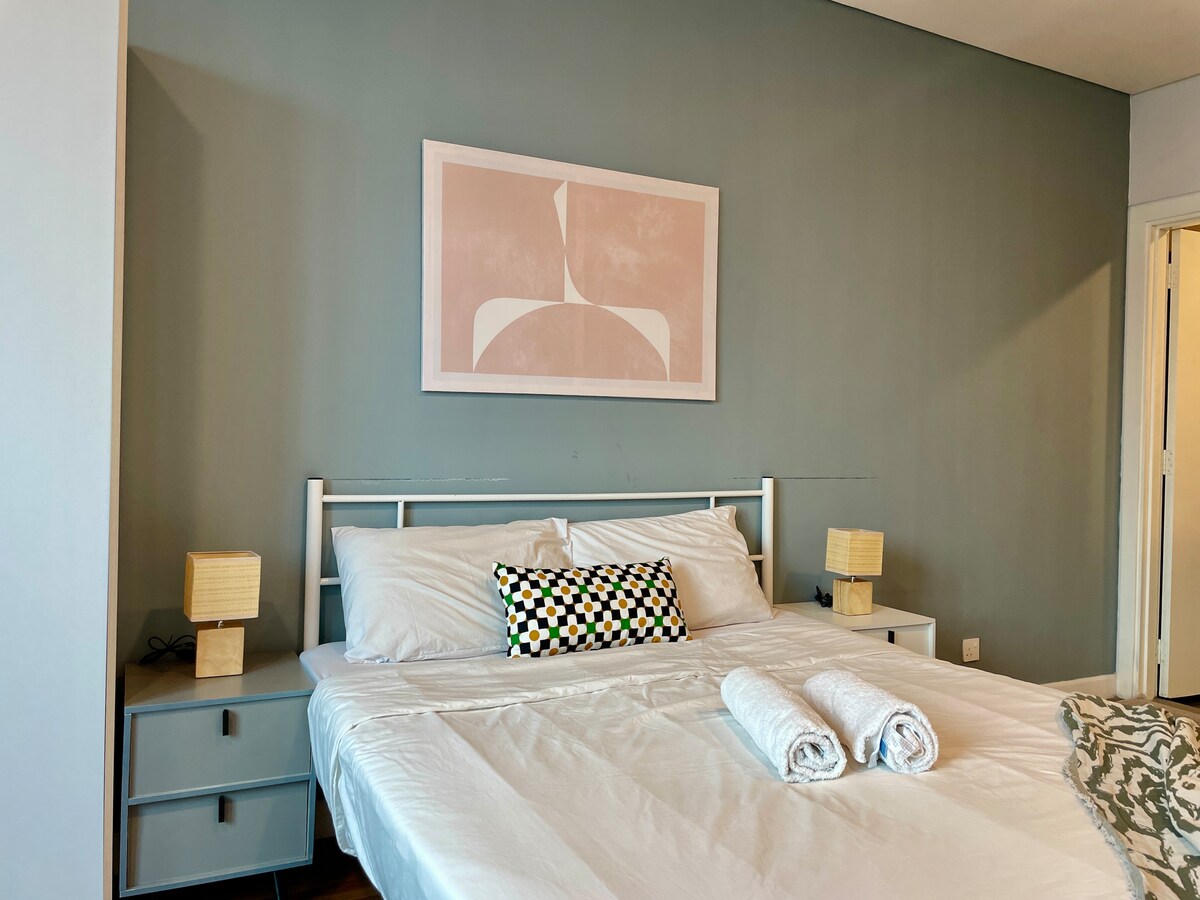 The Calma - ն խաղաղ 2BR հանգստի վայր է Կլ քաղաքի սրտում, որը գտնվում է հեղինակավոր Platinum Suites - ում: Հանգստացեք հեքիաթային հովանոցով մահճակալի տակ կամ հանգստացեք տատամի ոճի սենյակում ՝ մուջիի ոգեշնչված շունչով ։ Նախագծված է մինիմալիստական, գեղարվեստական շտրիխներով. կատարյալ է Կլաուդիա ուսումնասիրելուց հետո ։ Վայելեք Կլոր շրջանի լավագույն քաղաքներից և գիշերային տեսարաններից մեկով ցնցող երկնքի անեզր լողավազան ։ Գերարագ Wi - Fi - ը և մարզասրահը ներառված են ։ Մոնոռեյլից ընդամենը մի քանի քայլ հեռավորության վրա ։ StayCalma — լավ քնեք, ավելի լավ ուսումնասիրեք ։
