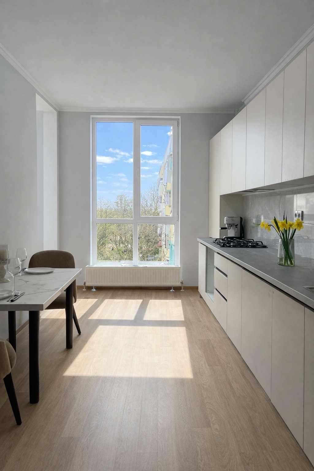 Բնակարանը գտնվում է երկաթուղային կայարանի մոտակայքում, այգու, մթերային խանութի, հայտնի KVINT գինու և կոնյակի գործարանի, սև խավիար արտադրող «Ակվատիր» ձկնային համալիրի ֆիրմային խանութի մոտակայքում։ Բնակարանը փոքր է, բայց կա ամեն ինչ, ինչ հարկավոր է հարմարավետ կացության համար։