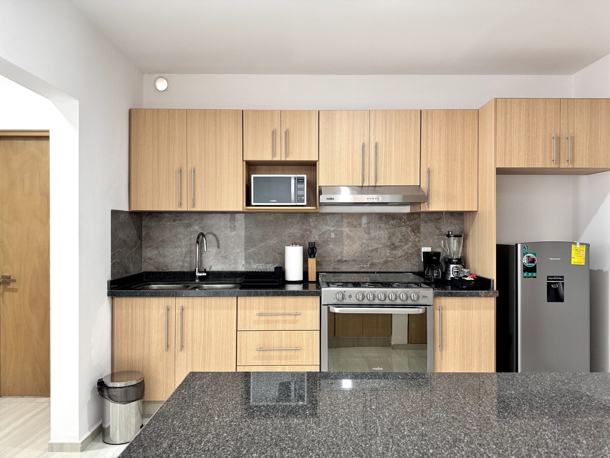 Disfruta de lujo y comodidad en este departamento contraesquina de Plaza San Luis, ideal para 2 personas. A pasos de restaurantes, bares, centros comerciales, OXXO, farmacia y hospital, además del Parque Tangamanga y un campo de golf. Terraza con vistas a la ciudad, asador y mesa para 4. Cocina equipada con equipos TEKA, WiFi, elevador, portón eléctrico, alarma y 2 cajones de estacionamiento. Zona segura y tranquila.