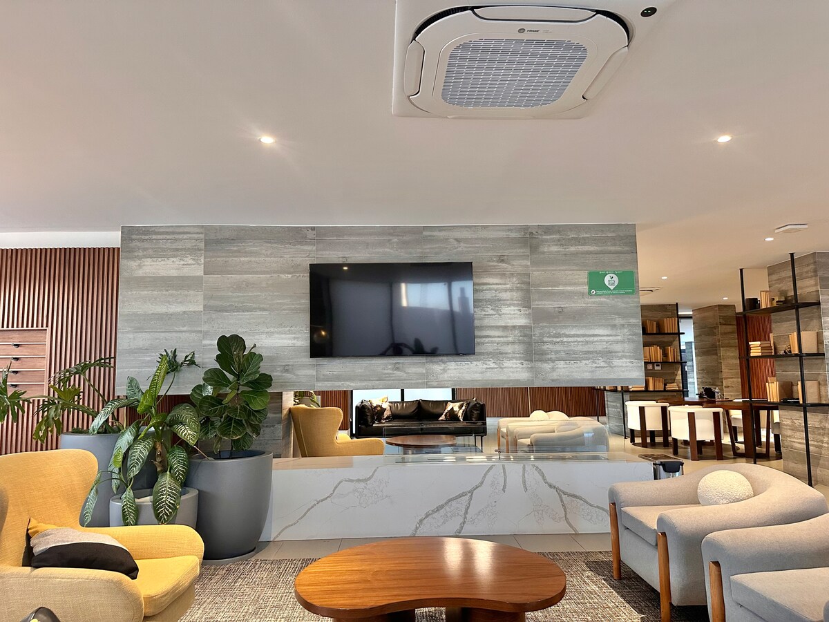 Վայելեք յուրահատուկ փորձառություն մեր բացառիկ ստուդիական պենտհաուսում, որտեղից բացվում են Տիխուանայի և Սոլոսի մարզադաշտի ցնցող համայնապատկերը: Այս մասնավոր հանգիստն առաջարկում է անվտանգություն, հանգստություն և ժամանակակից դիզայն, որը միավորում է շքեղությունն ու հարմարավետությունը ։ Գտնվելով հեղինակավոր «Ոսկե գոտում »՝ դուք կունենաք ամեն ինչ ձեր ձեռքի տակ ՝ անմոռանալի փորձառություն կազմակերպելու համար ։ Բացի այդ, կարող եք օգտվել լողավազանից և վայելել զովացնող պահեր։ Կատարյալ է բիզնեսի, հանգստի կամ հանգստի համար ։ Քնում է 2 -3 հոգի ։ Վայելեք ձեր այցը ։