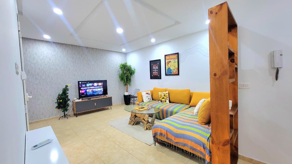 Գեղեցիկ և ամբողջ հարմարավետ 1 ննջասենյակով 90 քմ մակերեսով բնակարան Թունիսի Լա Մարսա քաղաքի սրտում ։ Բնակարանը շատ լուսավոր և հարմարավետ է, գտնվում է քաղաքի գլխավոր փողոցում ՝ լողափից 10 րոպե հեռավորության վրա, և մոտ է հիմնական տեսարժան վայրերին, ռեստորաններին, խանութներին և տեսարժան վայրերին ։ Դուք կվայելեք հարմարավետությունն ու հանգստությունը մեկ անգամ բնակարանում, բայց երբեք հեռու չեք լինի Լա Մարսայի աշխույժ փողոցներից: Իդեալական է ինչպես հանգստի, այնպես էլ գործնական ուղևորությունների համար ։