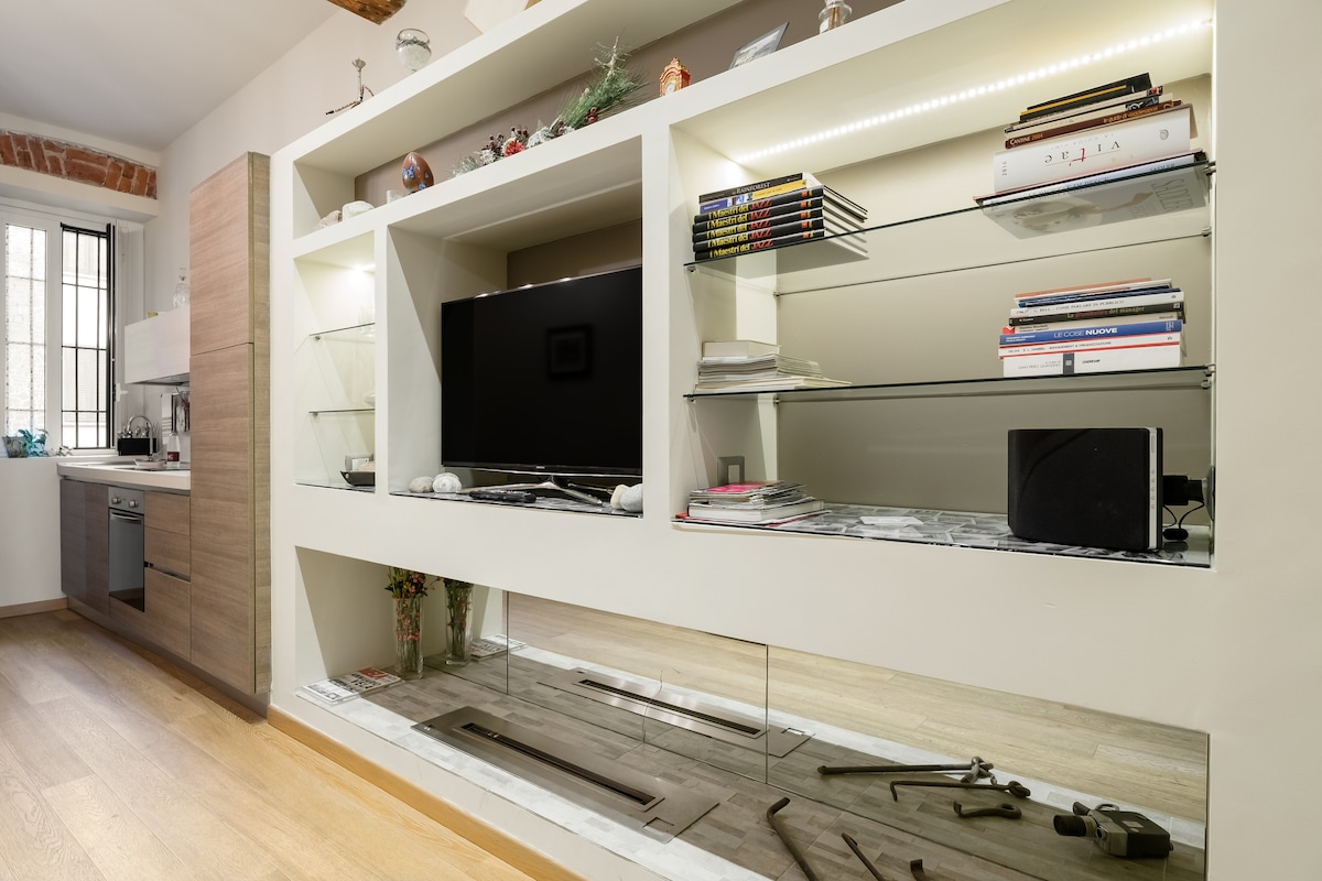 Այս ցնցող մեկ սենյականոց բնակարանը գտնվում է 1600-ականների պատմական շենքում։ Շենքը ճարտարապետական գոհար է Միլանի սրտում՝ տիպիկ մասնավոր կենտրոնական բակով և խնամքով պահպանված զարդանախշերով։ Բնակարանից բացվում է Նավիլիո Գրանդե ջրանցքի և քաղաքի պատմական շենքերի ու տեսարժան վայրերի անզուգական տեսարան։ Այն գտնվում է հետիոտնային տարածքում, որը հայտնի է իր աշխույժ գիշերային կյանքով, բարձրակարգ ռեստորաններով, պաղպաղակի սրահներով և սրճարաններով։
