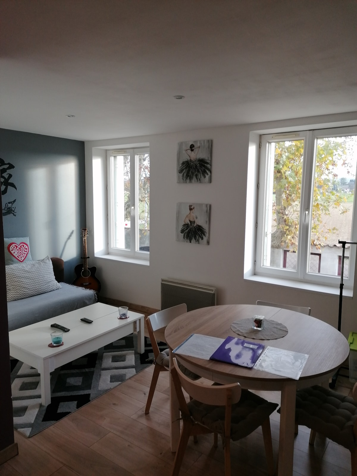 Charmante maison mitoyenne refaite à neuf avec des matériaux naturels, au calme de la campagne trés paisible. Rivière à 150 m idéale pour se ressourcer Randonnees, VTT etc. Les soirées privées sont interdites. Venez découvrir notre Région. Lyon 35 mntes, Vienne a 15 kms, festival du Jazz, Village de marque à 20 mntes, Festival Berlioz. Sur la route des Alpes ou de la Méditerranée. Cuisine équipée, 2 chambres, salle de bain, séche cheveux et 2 wc. Linges lit fournis mais pas les serviettes.