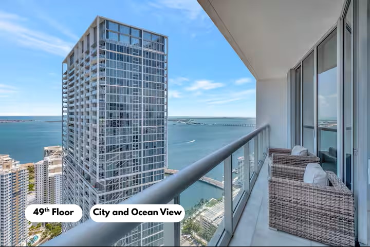 Top floor modern designer Penthouse, two bedroom, two bath, right in the heart of Miami. Enjoy style, convenience, and breathtaking views of Miami from your private wrap around balcony & take in panoramic vistas of the ocean, yachts and city. Kitchen features new stainless-steel appliances. Living room boasts brand new 4K Smart TV with dinning area. Master Bedroom has ultra comfy king size bed + en-suite, stylish Queen room both with smart TV’s. Brand new bathrooms, washer & dryer in Penthouse